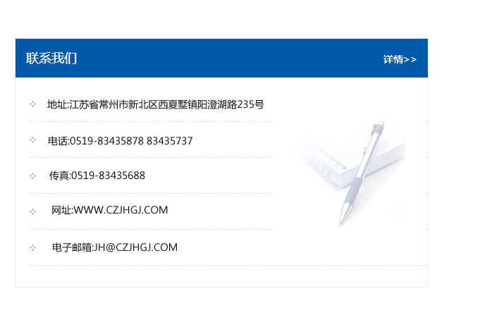傳真:0519-83435688    郵編:213135    網址:WWW.czjhgj_com.sqyuchang.com    電子郵箱:JH@czjhgj_com.sqyuchang.com